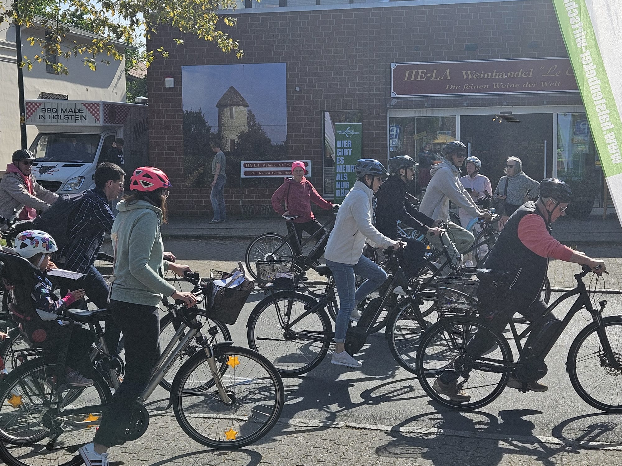 Die Teilnahme ist kostenlos und es gibt keinen festen Start. Ab 9:30 Uhr gibt es den Tourenplan auf dem Parkplatz von Edeka Böge und der Tanzzeit Tobi Higle in der Hauptstraße 37-43 in Halstenbek. Ab dann entscheidet jeder selbst, wann gestartet und mit wem gefahren wird. Die Tour endet auch wieder am Startpunkt und beim He-La Weinhandel darf im Anschluss bis spätestens 14:00 Uhr geklönt werden. Für die Versorgung haben Bettina Lammers und ihr Team Würstchen vom Grill, Wein, Bier und Softgetränke im Angebot.